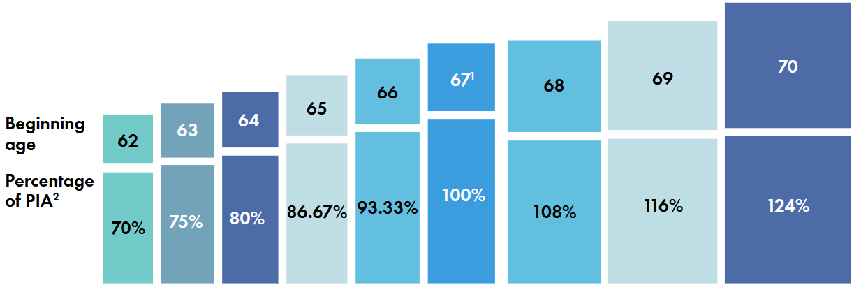 Source: SSA.gov. 1 Represents Full Retirement Age (FRA) based on DOB January 2, 1960. 2 PIA = The primary insurance amount is the basis for benefits that are paid to an individual.